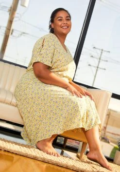 A lush floral print bodycon dress with flutter sleeves, every plus size person should have in their closet!