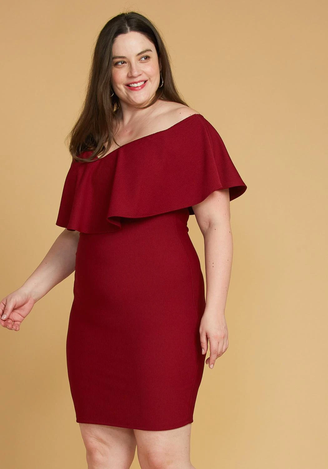 Asoph Plus Size Ribbed Off Shoulder Mini Party Dress