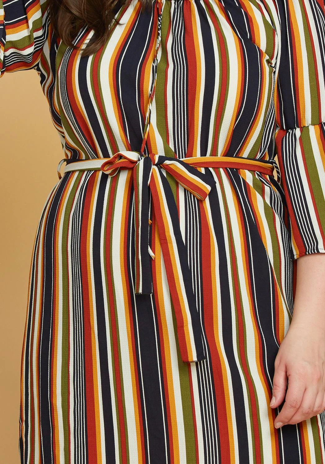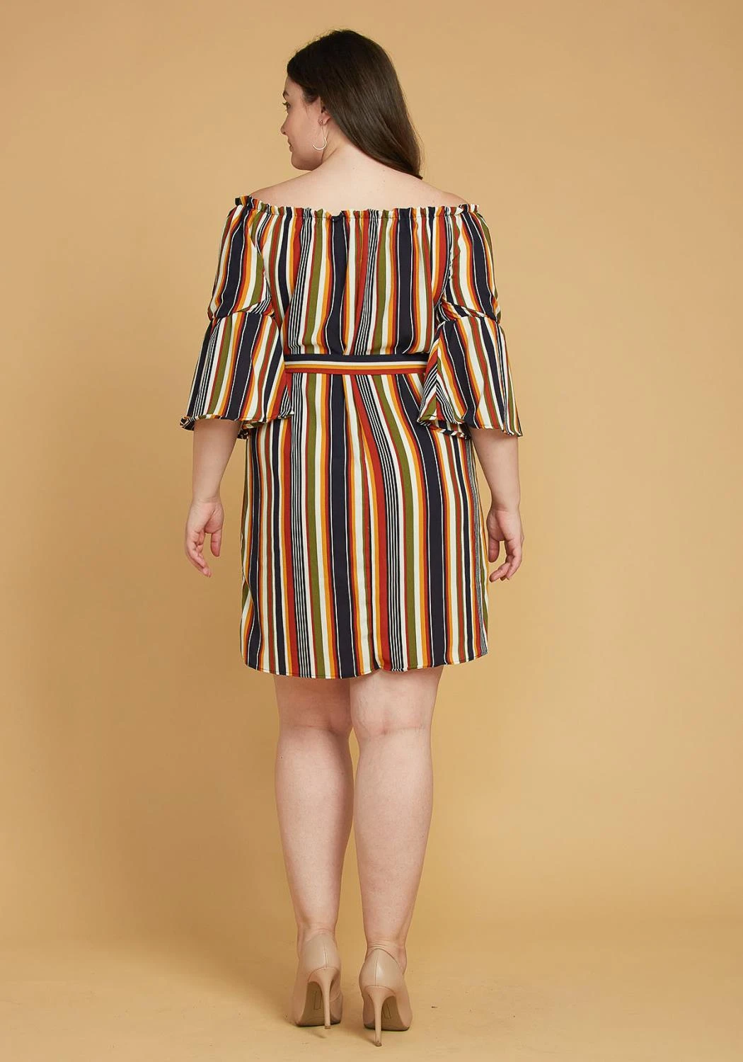 Asoph Plus Size Stripe Off Shoulder Casual Dress