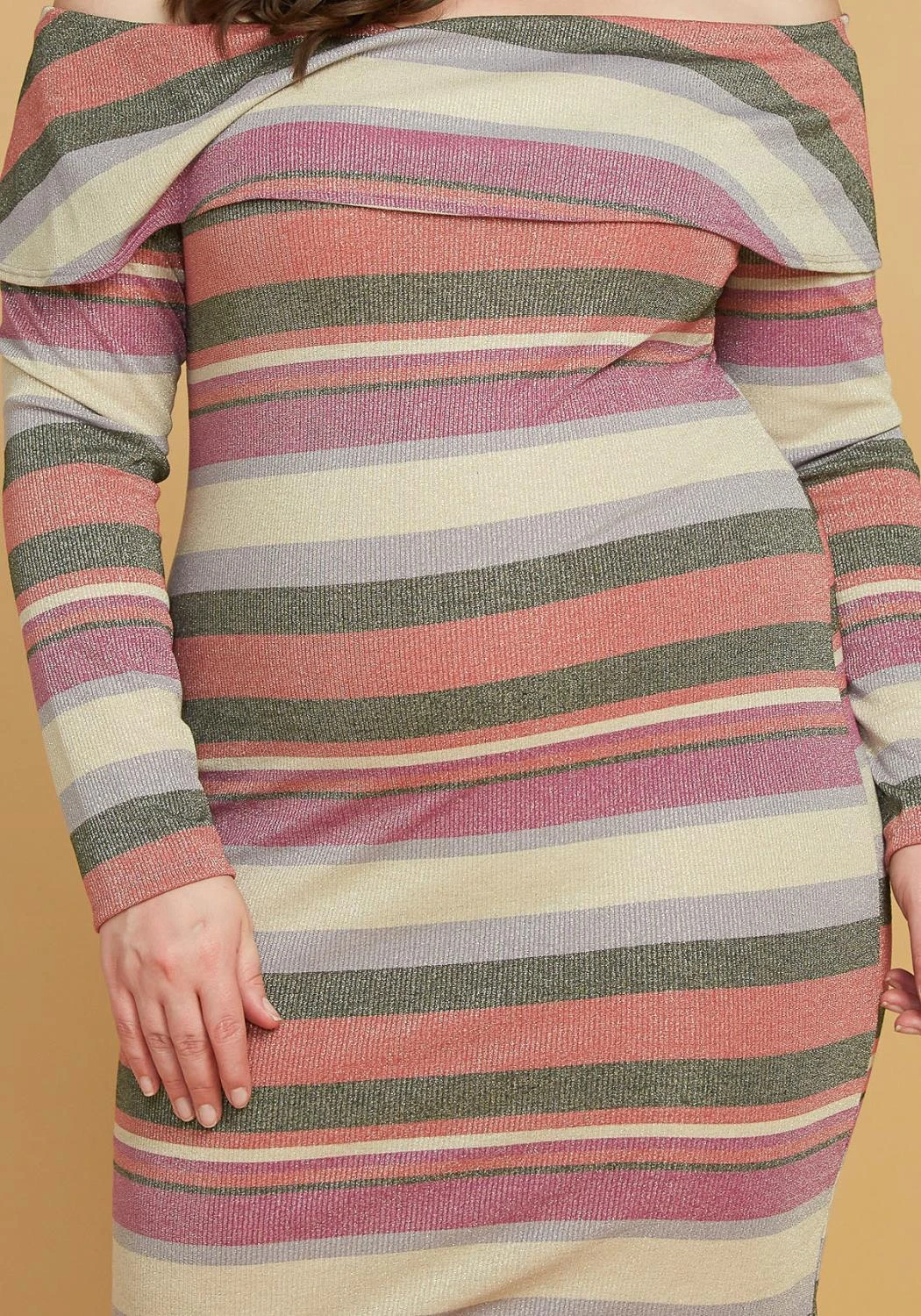 Asoph Plus Size Stripe Off Shoulder Midi Dress