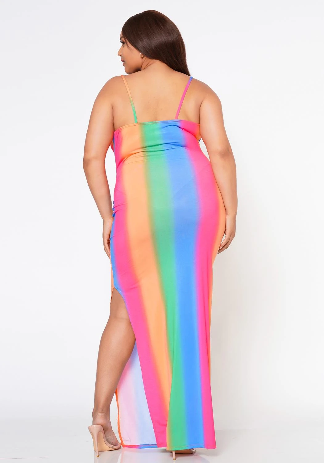 Steal the attention in this colorful pattern maxi dress in cowl neck style, side slit detail and bodycon fit.