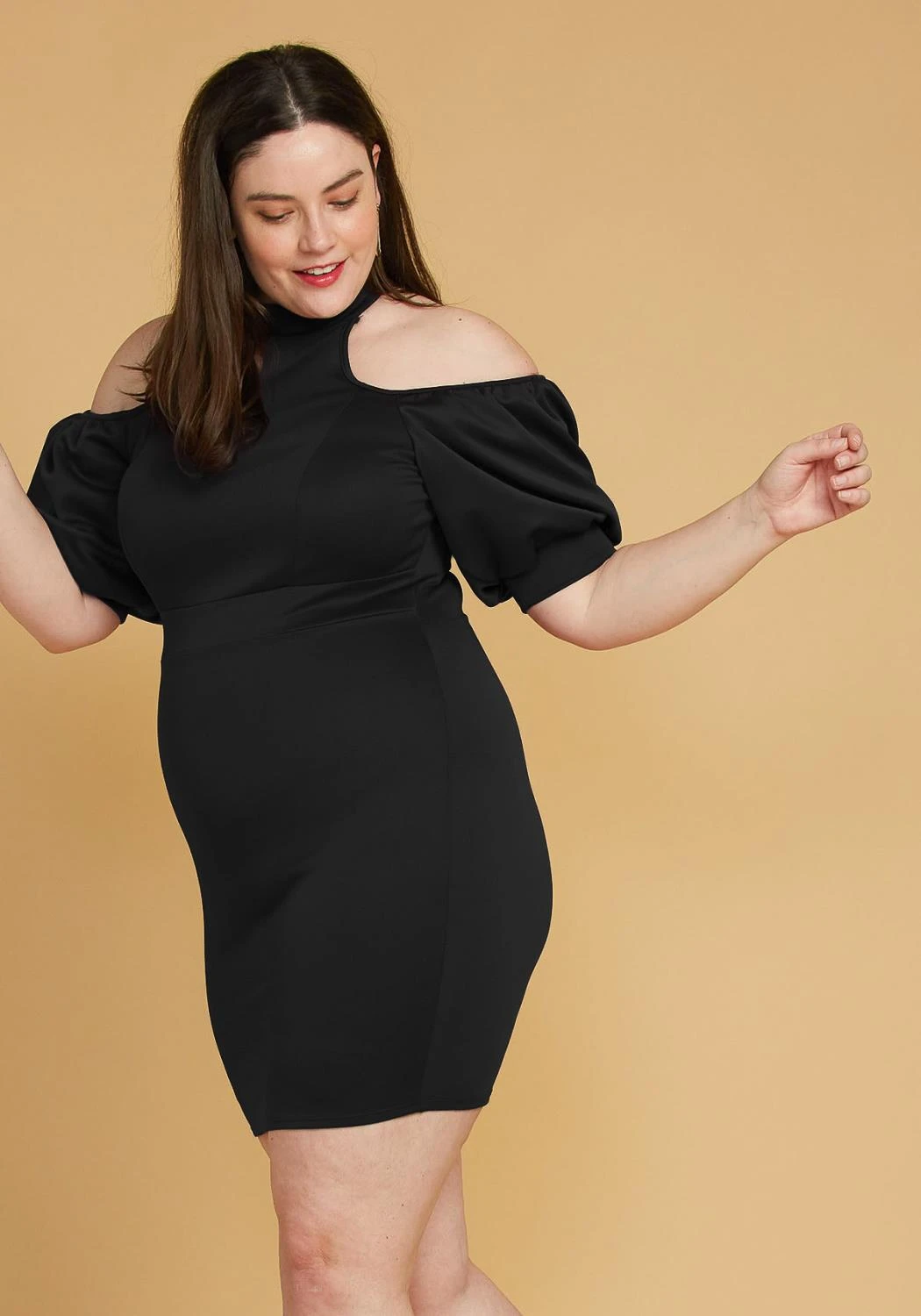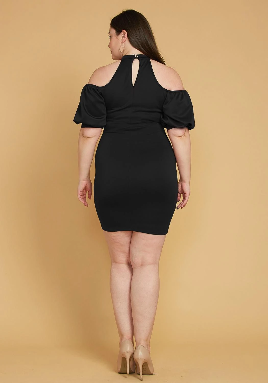 Plus Size Shoulder Cutout Puff Sleeve Dress