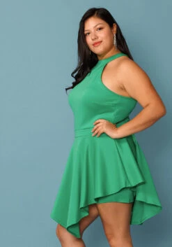 Stunning plus size women’s bodycon mini dress in smocked material, centered drawstring hem, short flare sleeves, off shoulder design and lettuce trim details.