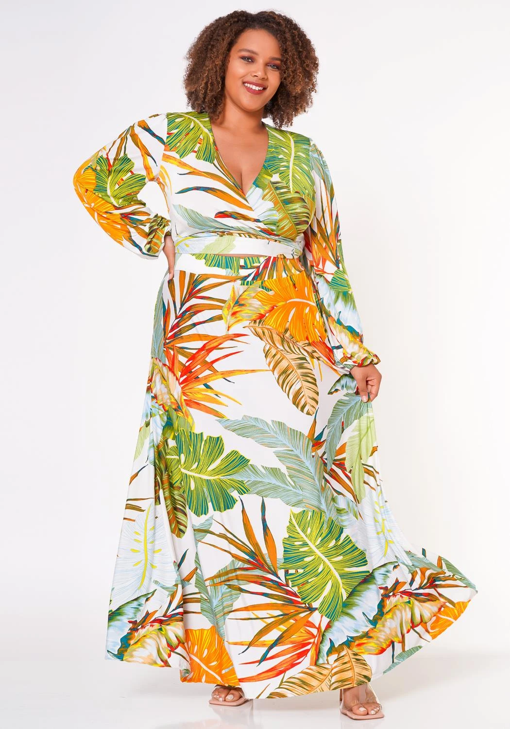 Plus Size Summer Leaf Two Piece Set