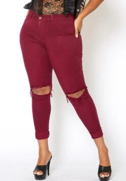 Asoph x Vibrant plus size women’s cropped capri denim jean in dark wash color plus mini flared fringe hem, belt loop holes and pockets.
