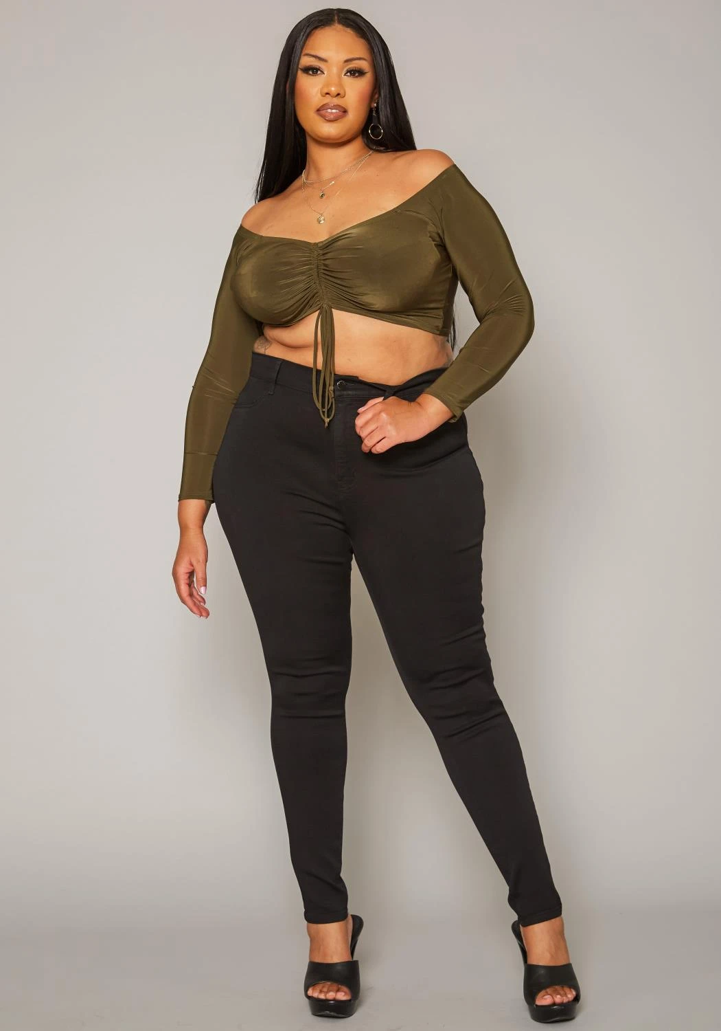 Asoph x Vibrant plus size women’s basic everyday skinny denim jeans in high waisted style plus includes belt loop holes and pockets.