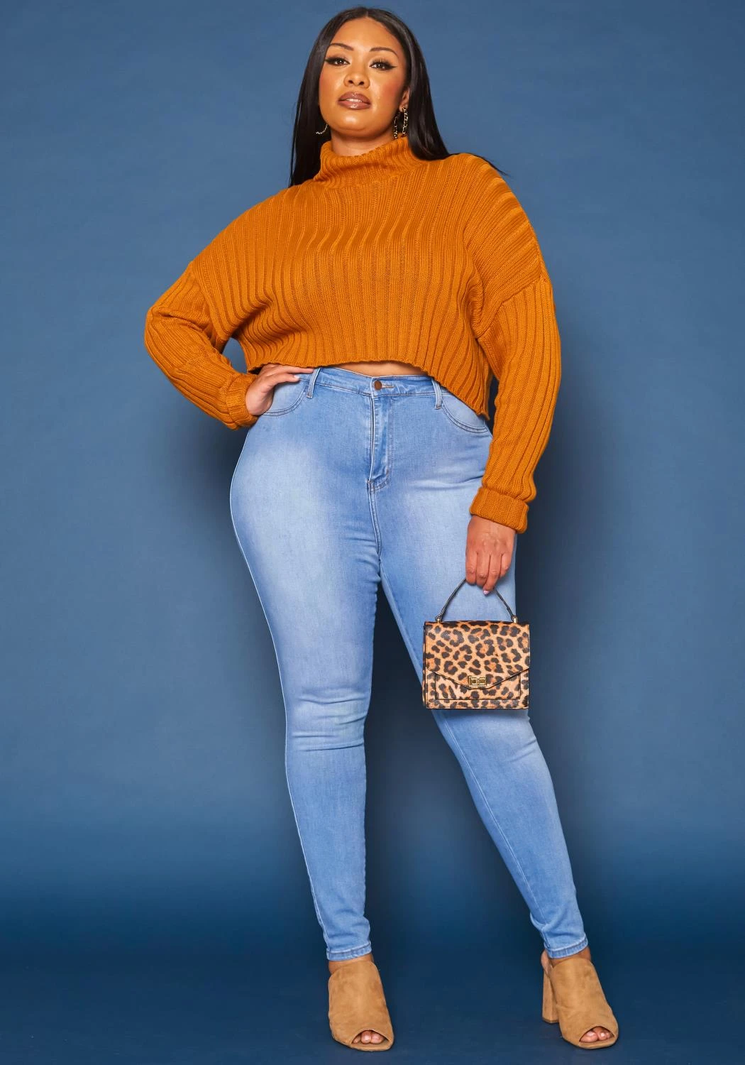 Vibrant Plus Size High Waist Light Wash Skinny Denim Jean