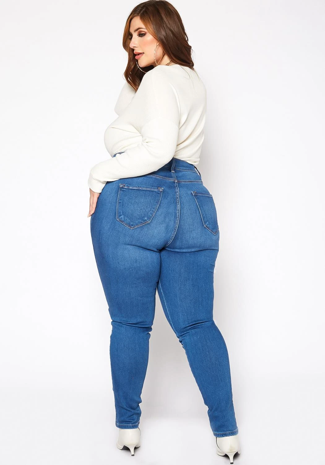 Asoph x Vibrant plus size women’s basic everyday skinny denim jeans in high waisted style plus includes belt loop holes and pockets.